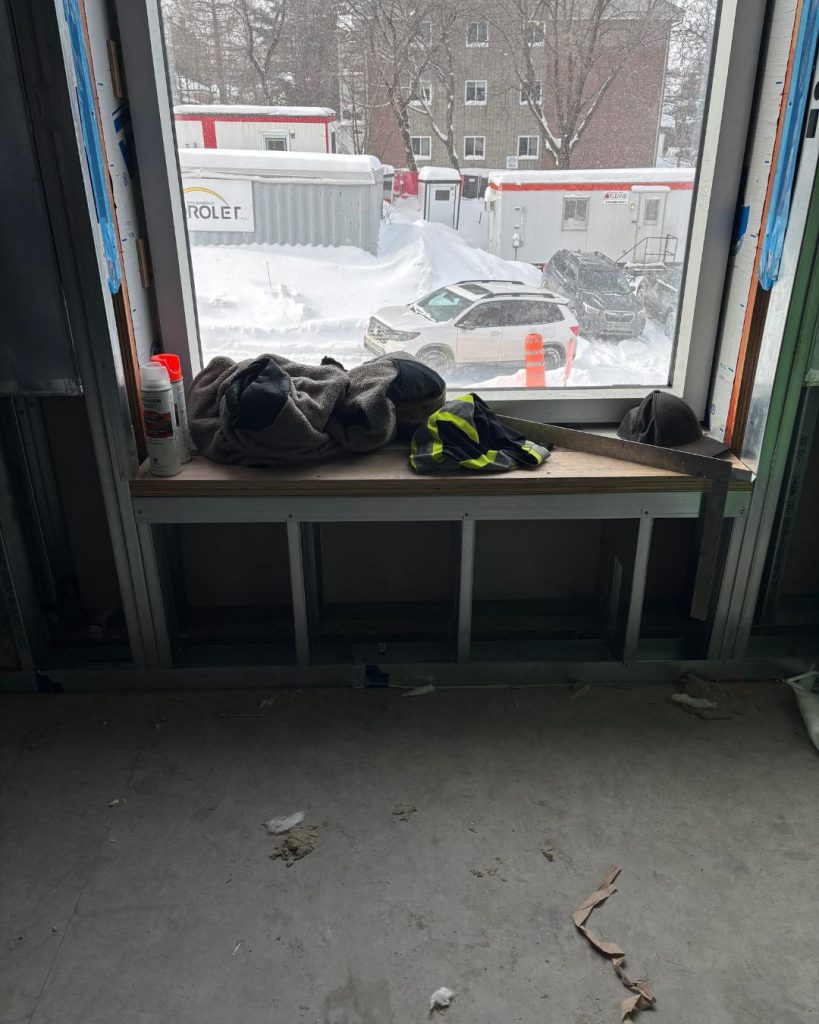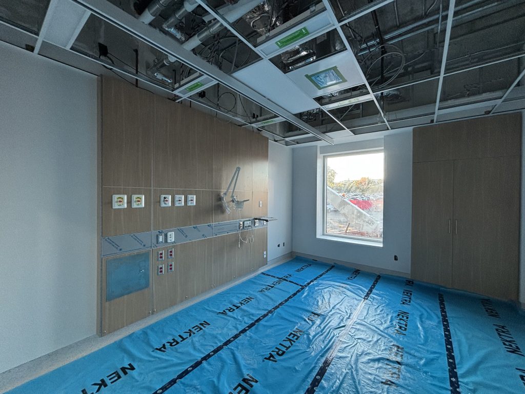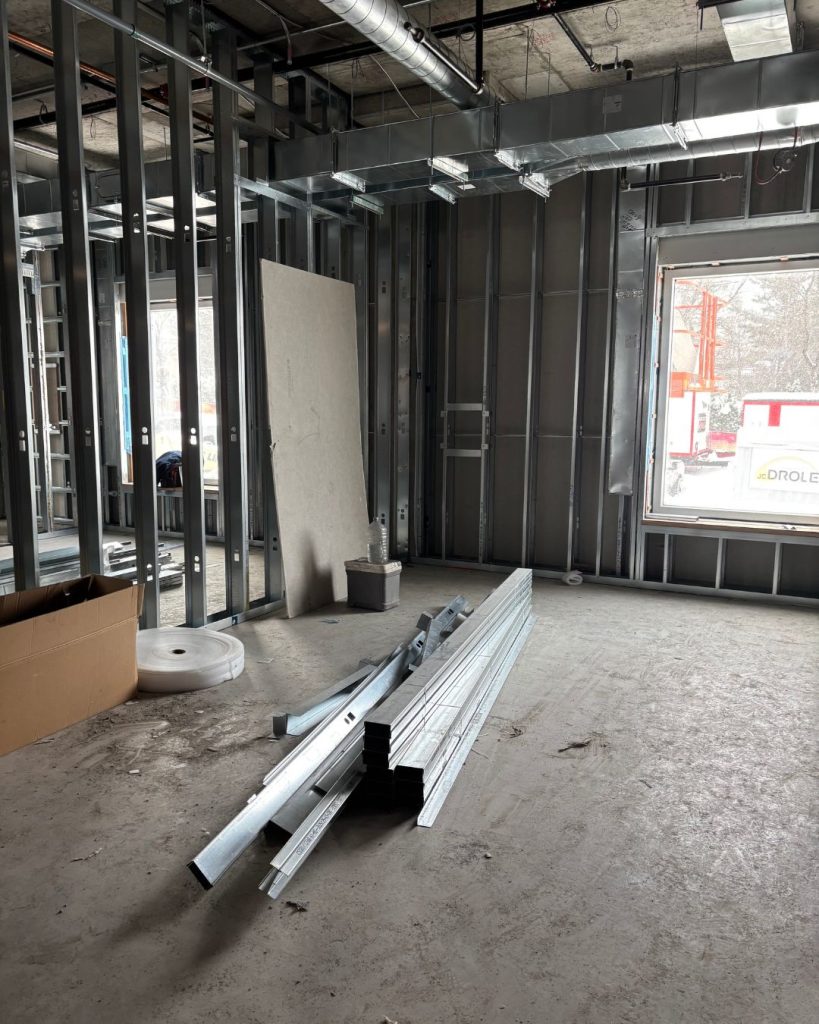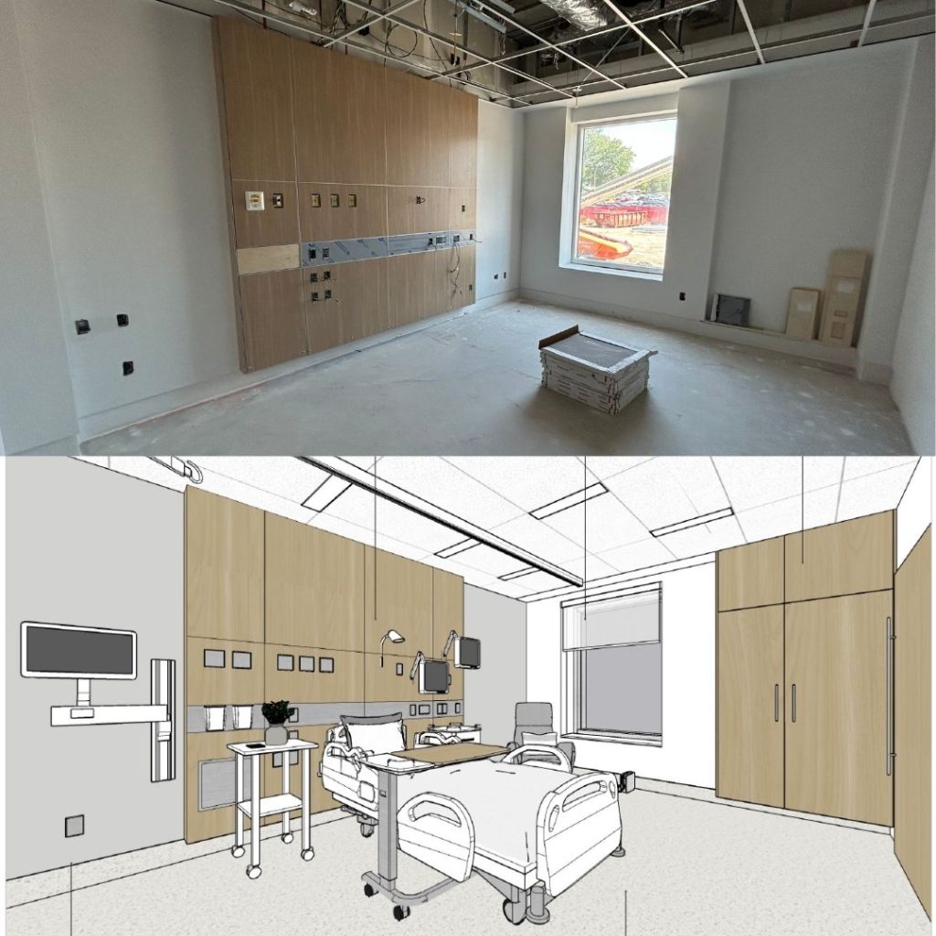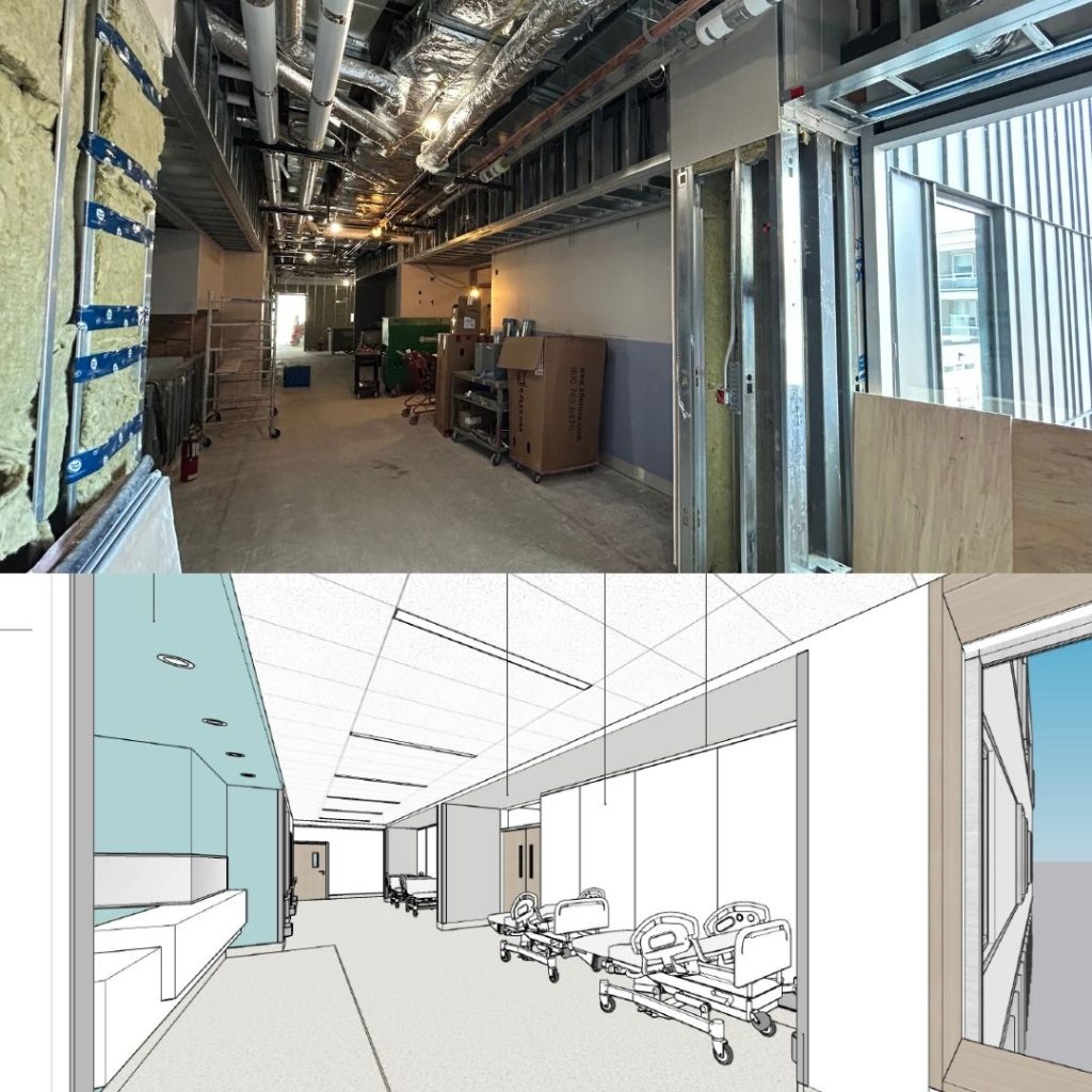 Il peut être difficile de se projeter, mais voici quelques photos de l’intérieur du Pavillon J. Vous pouvez voir la taille des fenêtres et des corridors, un future salle de repos, une future chambre double, l’entrée du personnel (avec les escaliers à l’intérieur plutôt qu’à l’extérieur!).
