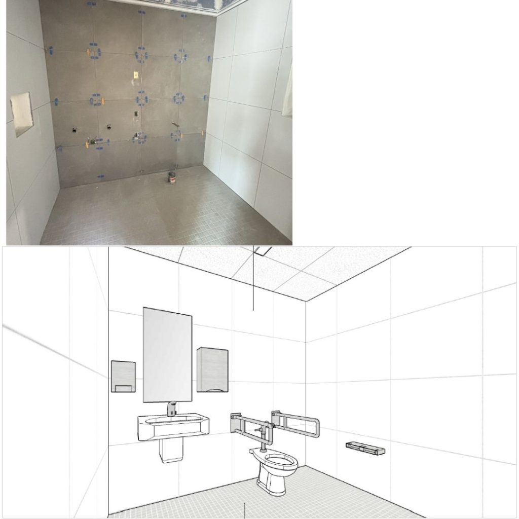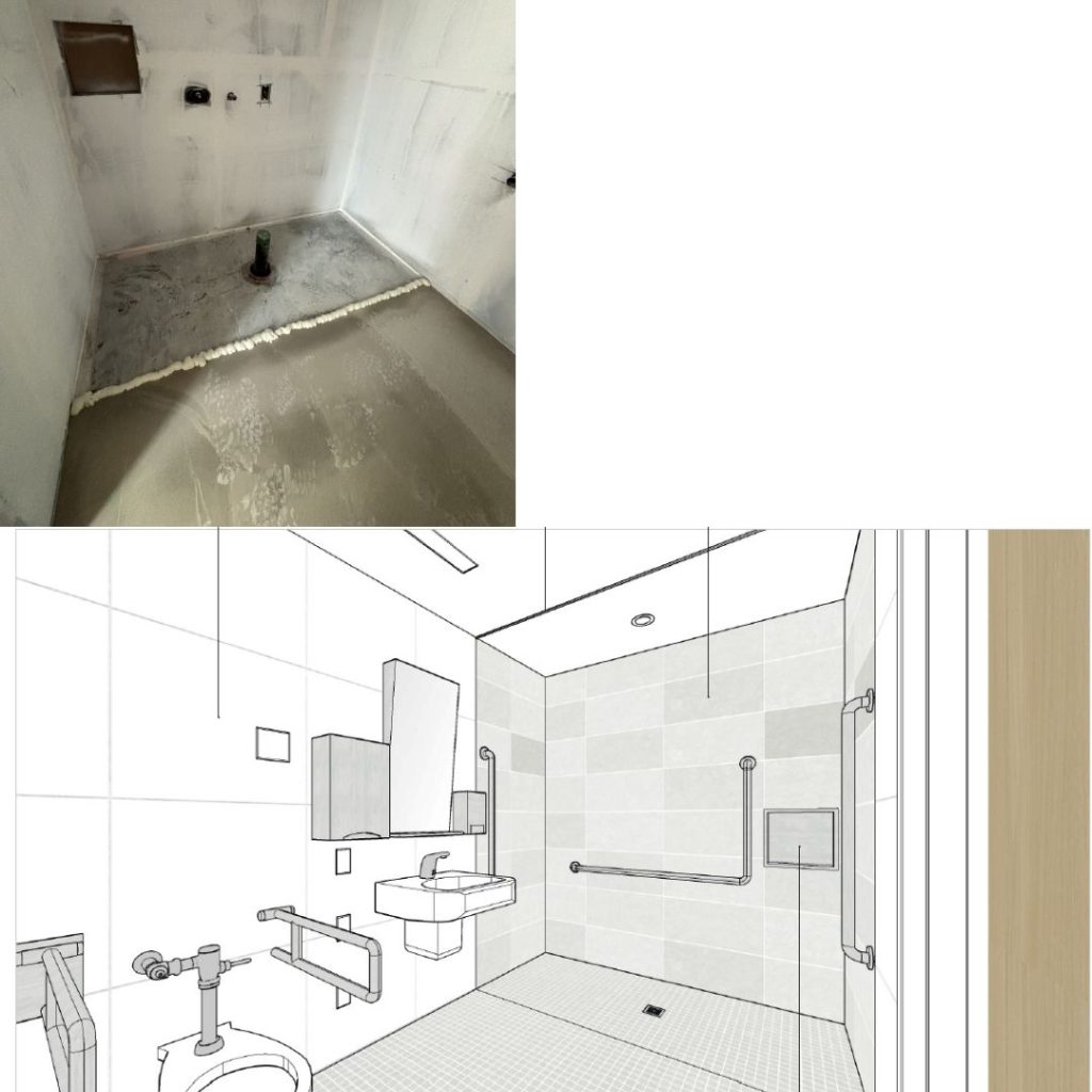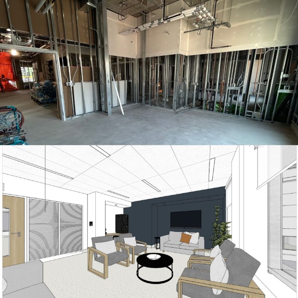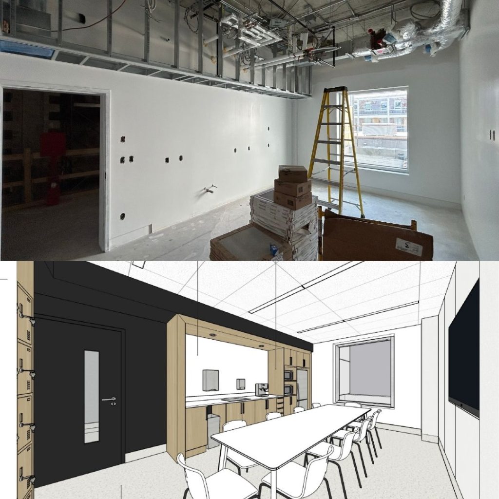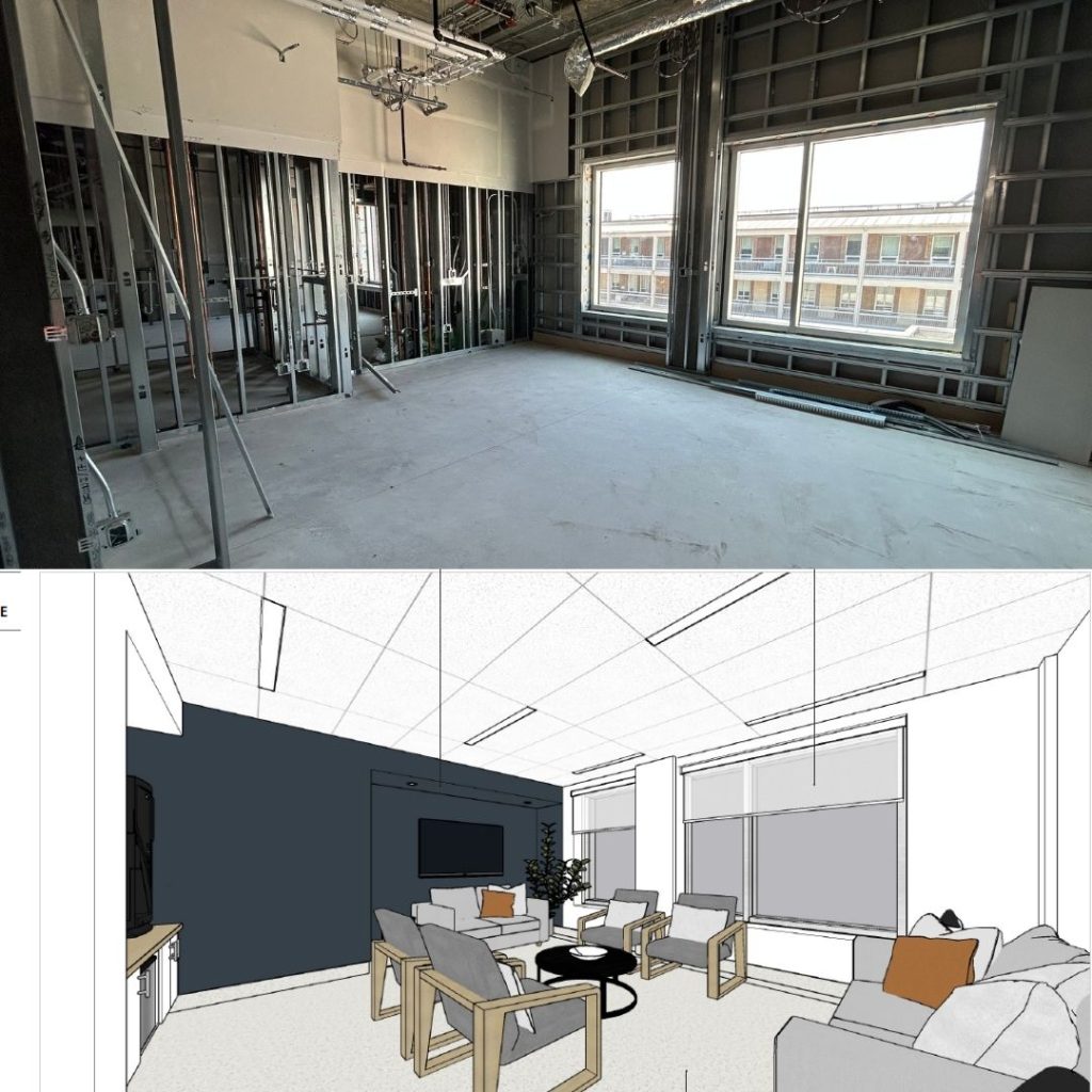 Il peut être difficile de se projeter, mais voici quelques photos de l’intérieur du Pavillon J. Vous pouvez voir la taille des fenêtres et des corridors, un future salle de repos, une future chambre double, l’entrée du personnel (avec les escaliers à l’intérieur plutôt qu’à l’extérieur!).
